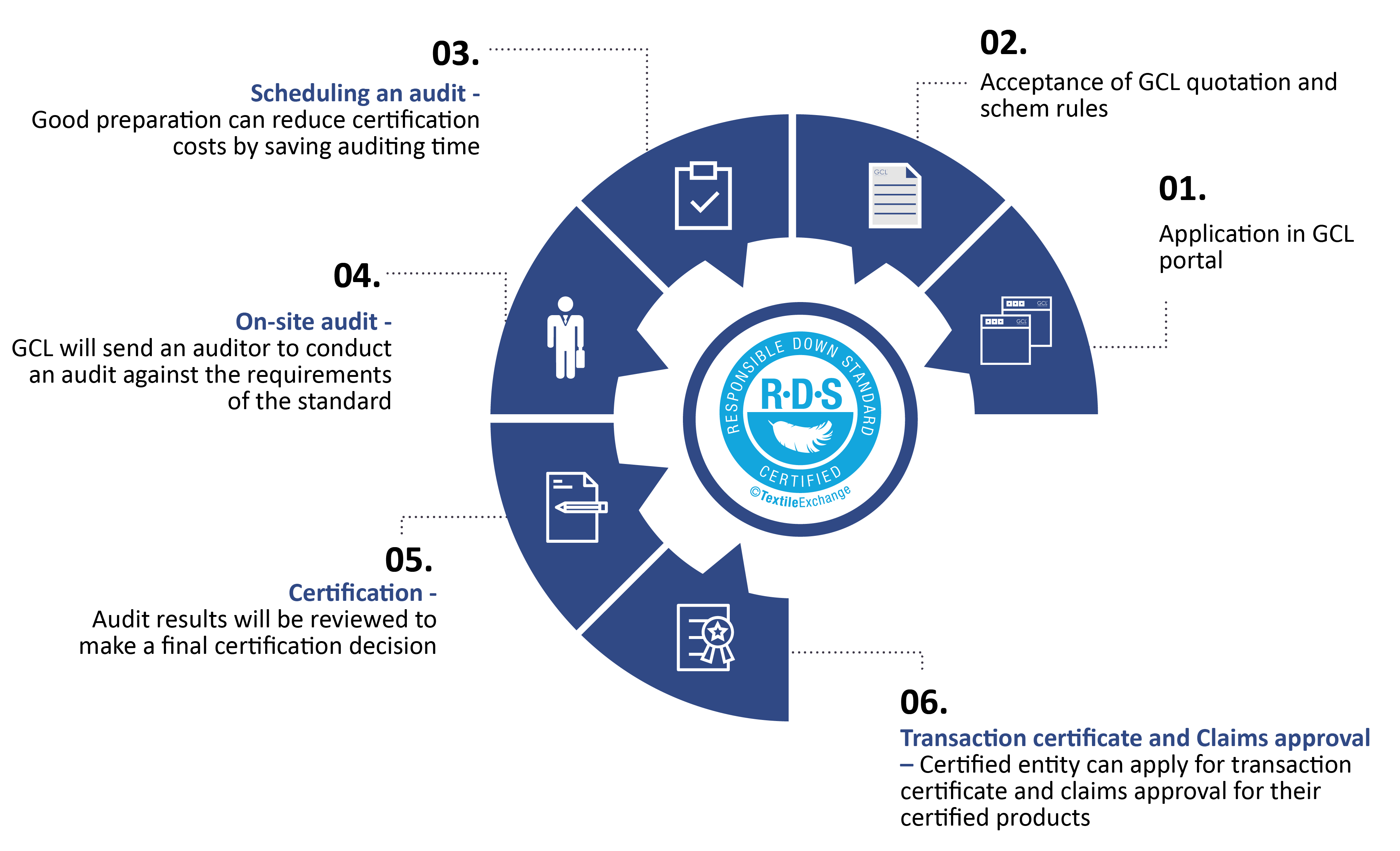 GCL offers certification services for the supply chain scope (post farm and post slaughter site) of Responsible Down Standard (RDS).
